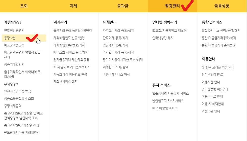 국민은행 통장사본 출력 (인터넷)