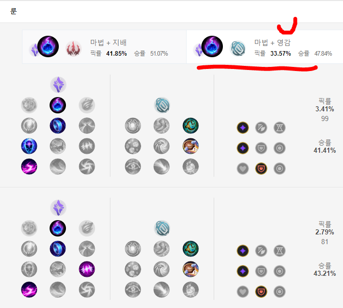 마법 + 영감완벽한 타이밍과 우주적통찰 룬을 들어줍니다.